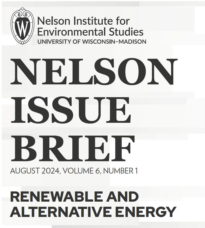 The August 2024 release of the Nelson Issue Brief is the first of a two-part edition on the topic of renewable and alternative energy. It provides an overview of the latest multidisciplinary research led by UW–Madison scholars in the Nelson Institute for Environmental Studies, including past and current Climate Action Lab members. Featured topics include capacity building to support energy applications of satellite data, community engagement to identify and address local energy needs, estimating the economic and health benefits of grid decarbonization in Wisconsin, and a holistic framework for understanding the societal benefits of utility-scale solar expansion.